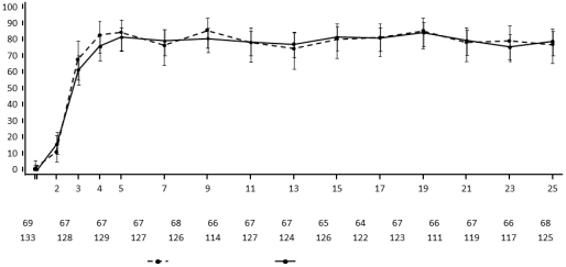 Le schéma d’administration peut occasionnellement varier de ± 2 jours par rapport au jour d’administration prévu (sauf le jour 1 et le jour 2). Dans ce cas, la dose suivante doit être administrée selon le schéma habituel.